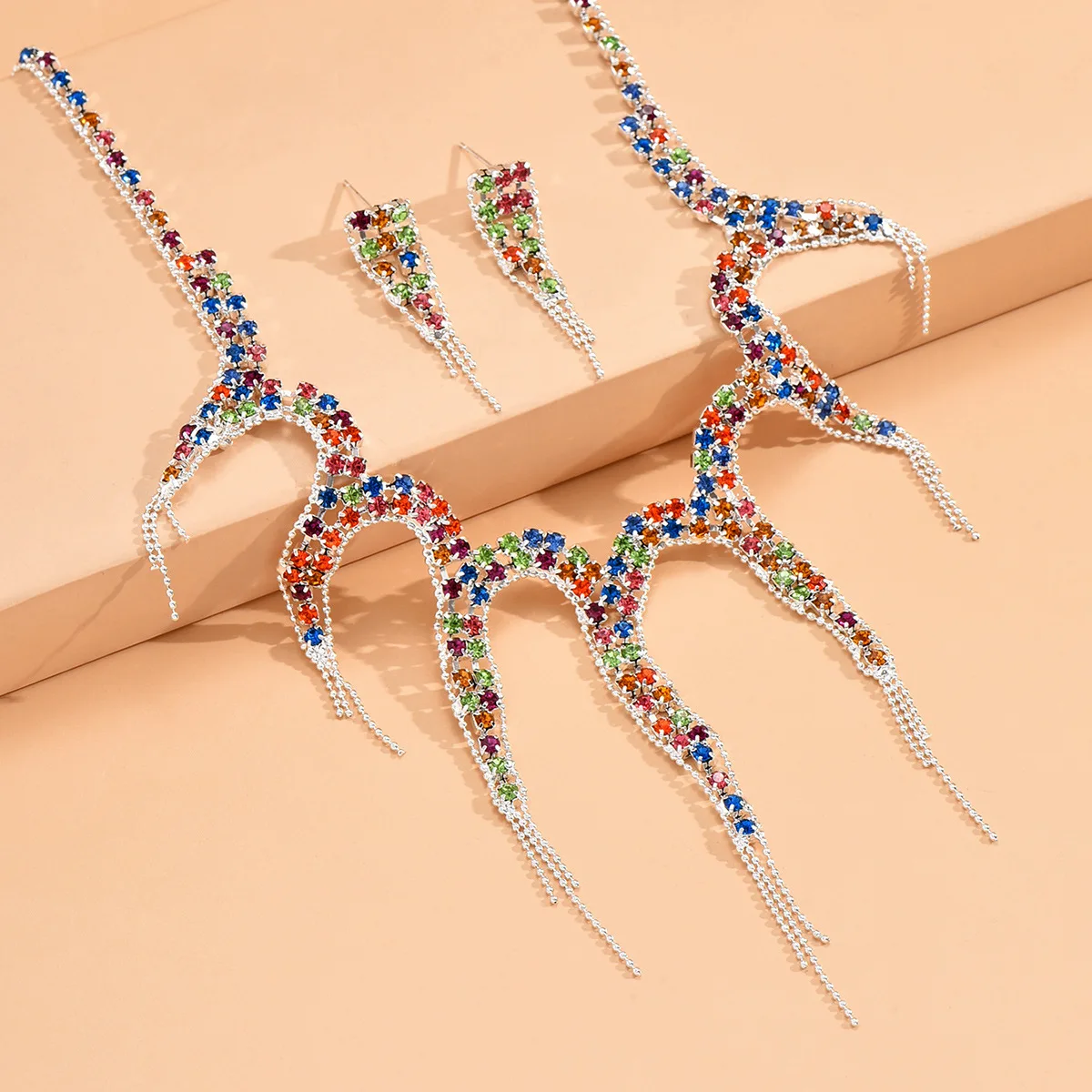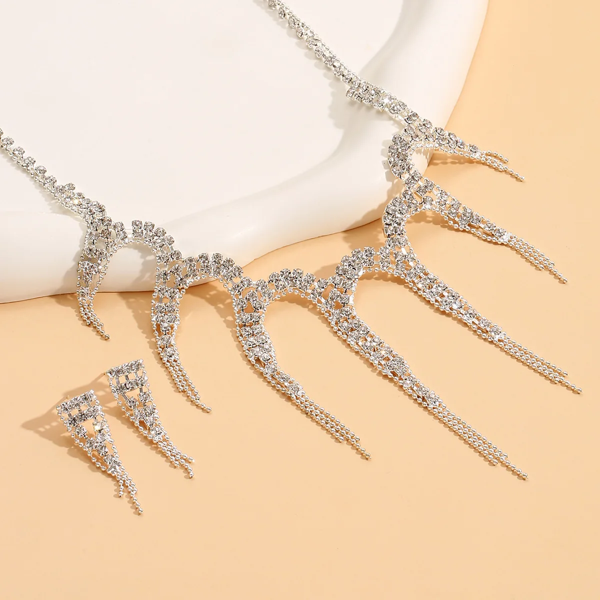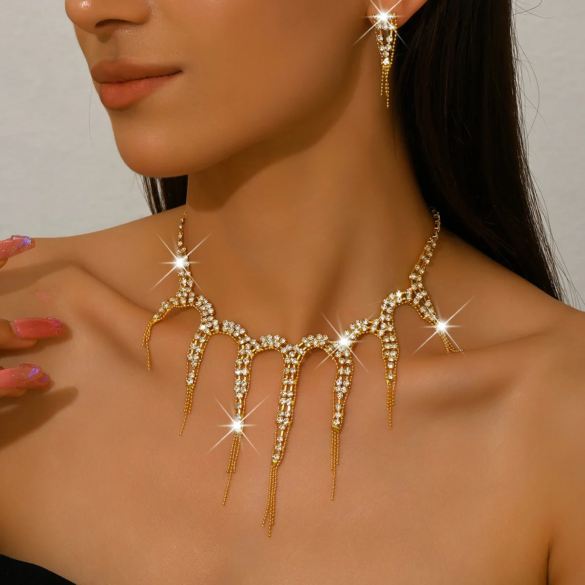 Ligte Luukse Kristal Juweliersware Stel vir Dames Banket Trendy Geometrie Halssnoer Oorbelle Stelle Geskenke Trou Herdenking Bykomstighede