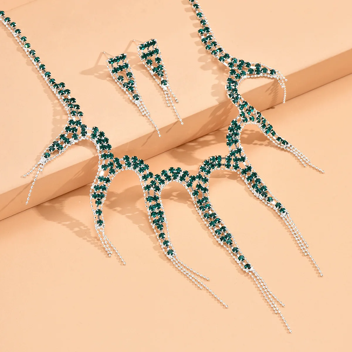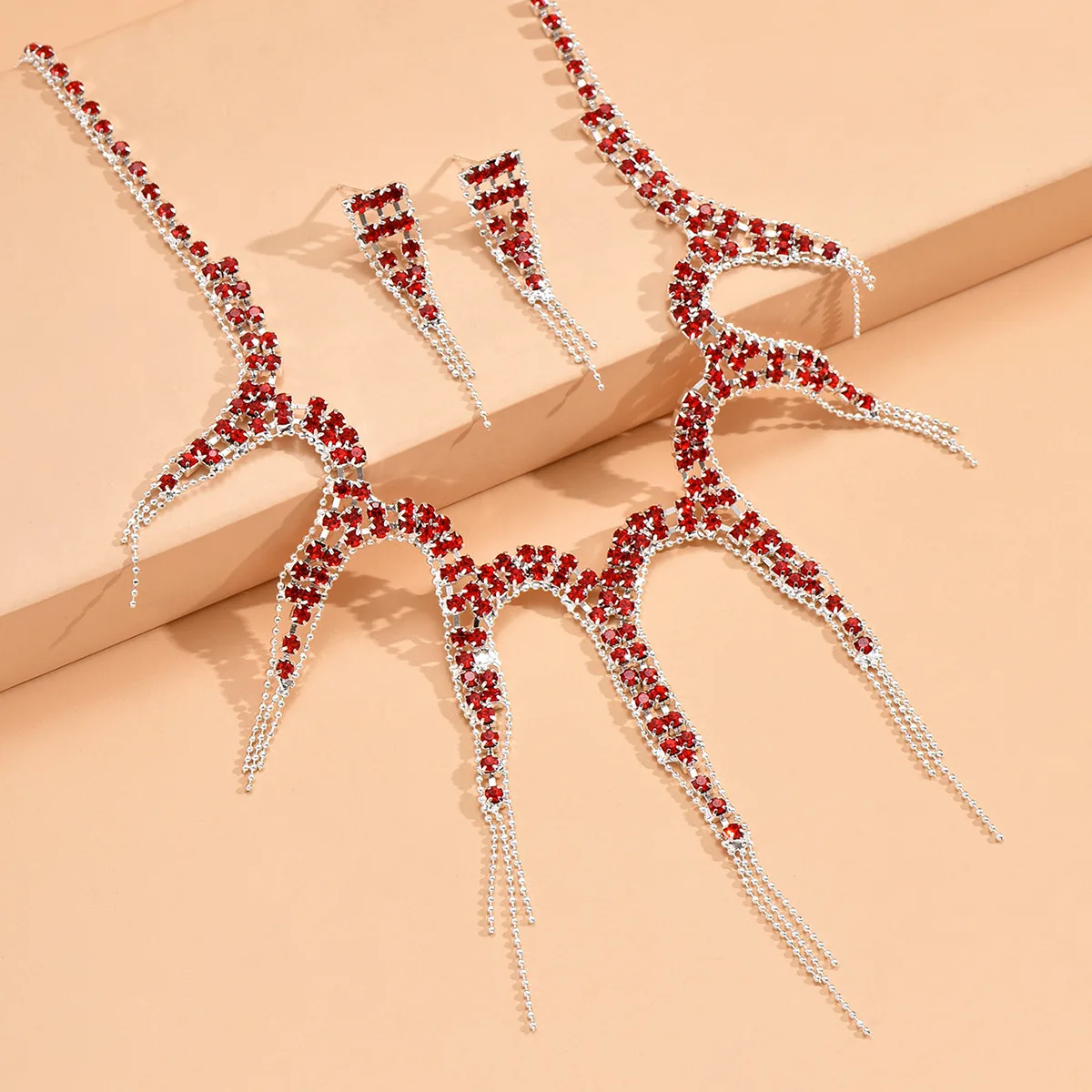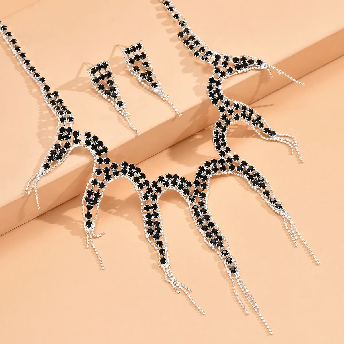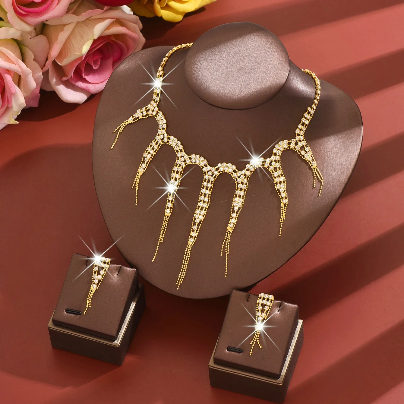 Ligte Luukse Kristal Juweliersware Stel vir Dames Banket Trendy Geometrie Halssnoer Oorbelle Stelle Geskenke Trou Herdenking Bykomstighede