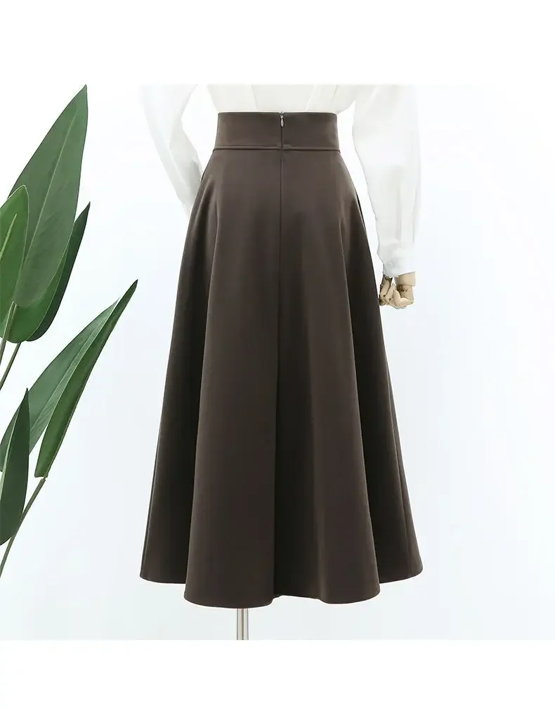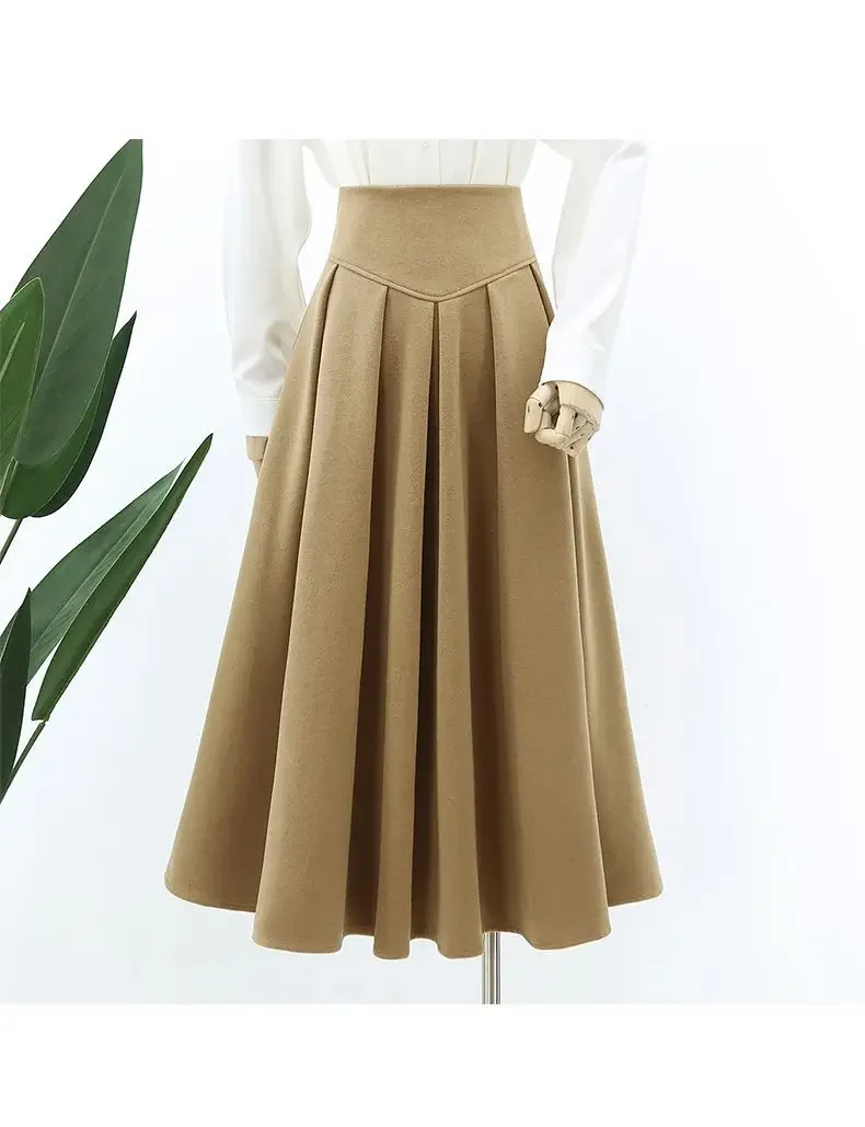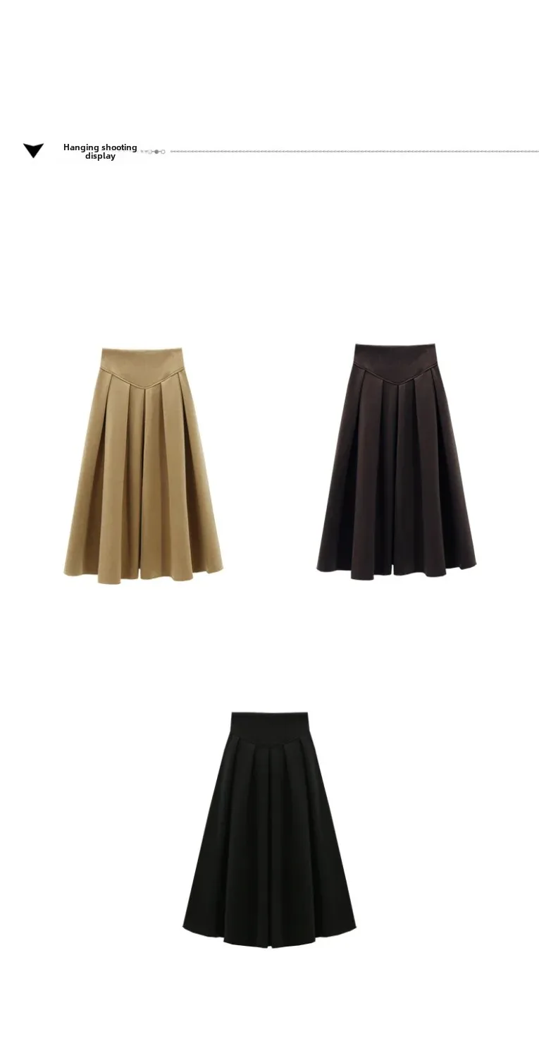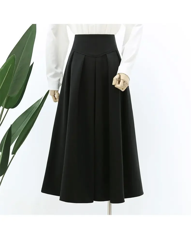 Nuwe Hoë-Middellyf Verslankende Gedrapeerde Rok Herfs/Winter Medium-Lengte Stylvolle Sensibility Ontwerp Grensgewyse Sambreelrok