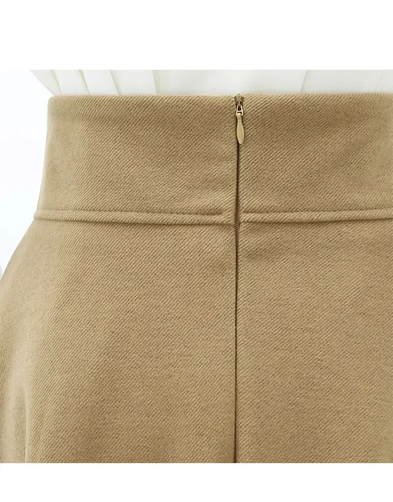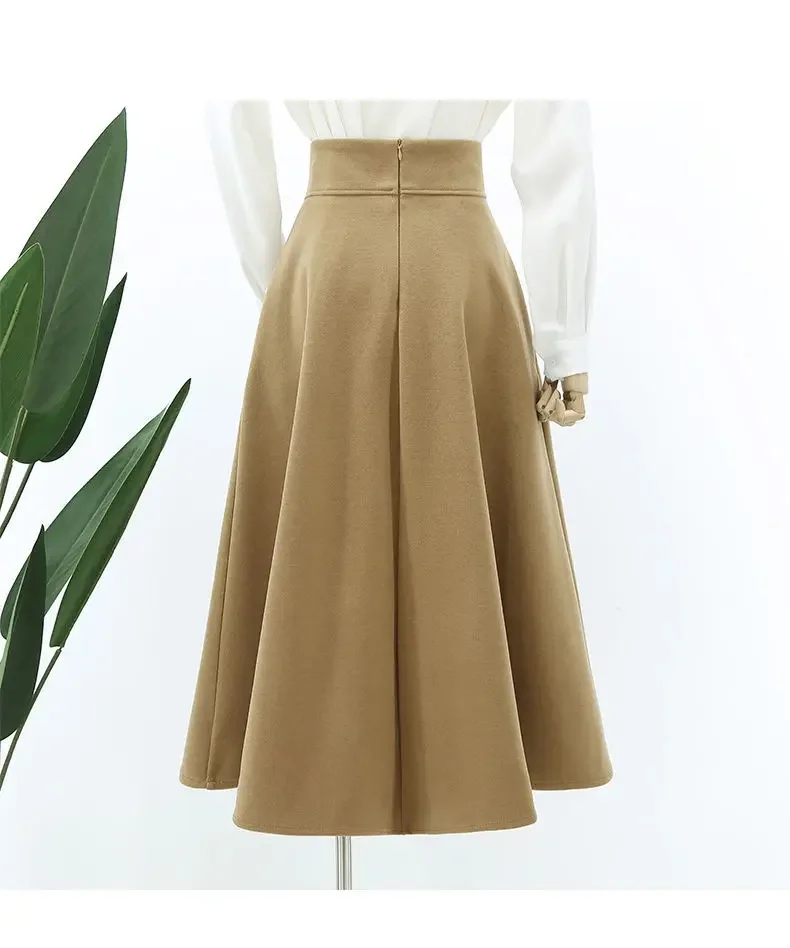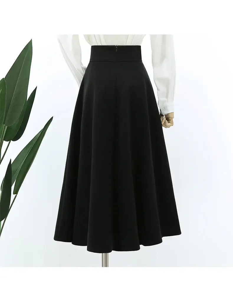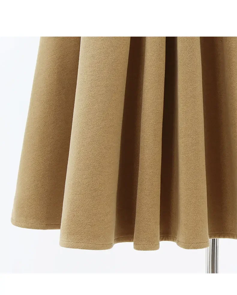 Nuwe Hoë-Middellyf Verslankende Gedrapeerde Rok Herfs/Winter Medium-Lengte Stylvolle Sensibility Ontwerp Grensgewyse Sambreelrok