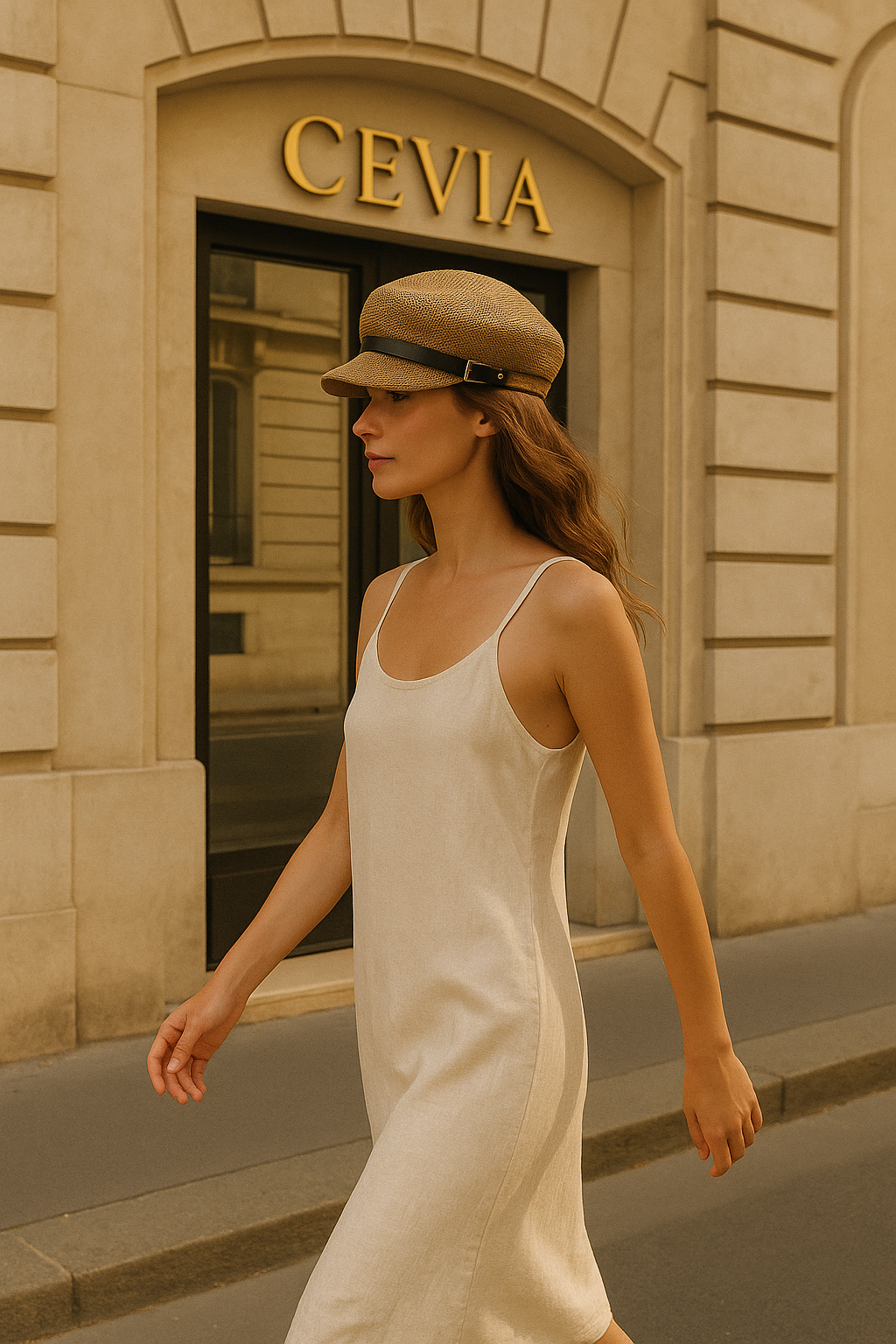The Veyona Straw-Belt Fisherman Cap blends natural texture with modern Parisian polish. Designed with a tightly woven straw structure, it holds a clean, sculpted silhouette while remaining lightweight and breathable. A sleek black faux-leather belt with a gold buckle wraps elegantly around the base, adding refined contrast to the warm straw tone. A timeless accessory for sunny days, weekend strolls, and chic CEVIA street style.